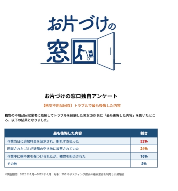 - 作業当日に追加料金を請求され、断れず支払った(52%)