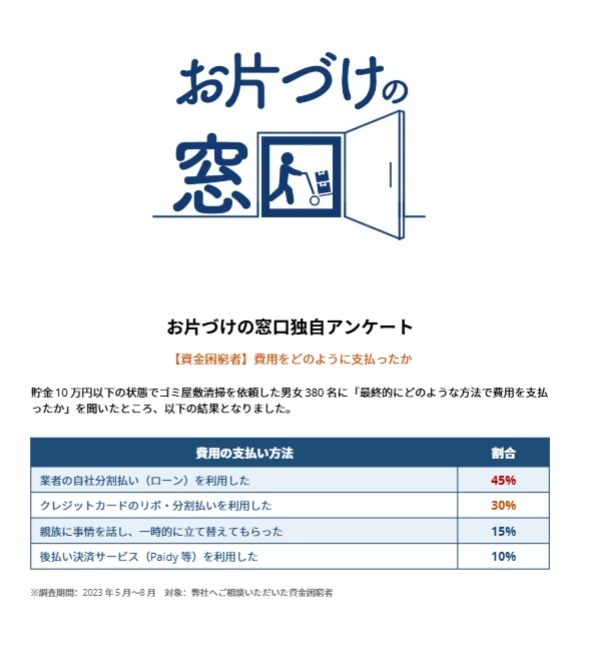 かつては「作業完了時に現金一括払い」が業界の常識でしたが、現在は利用者の経済状況に合わせた柔軟な支払い方法を用意している業者が増えています。 諦めて最悪の事態(強制退去や損害賠償)を迎える前に、まずはこの「資金調達の抜け道」を知ってください。