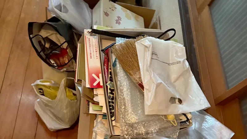 これらを一つひとつ検品しながら仕分けます。「重要書類」や「思い出の品(写真など)」のボックスを用意し、そこへ集めて作業後に必ず依頼者様に確認していただきます。「失くしたと思っていた指輪が出てきた!」と喜ばれることも日常茶飯事です。