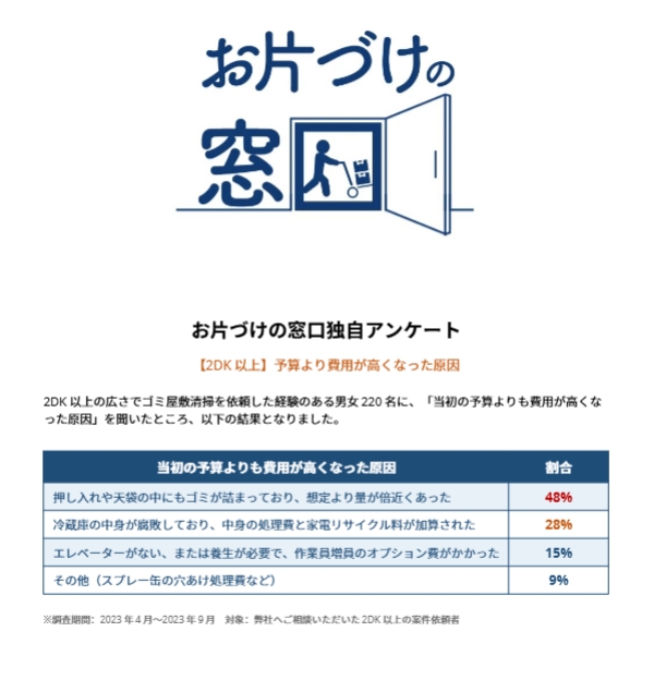 - 押し入れや天袋の中にもゴミが詰まっており、想定より量が倍近くあった(48%)