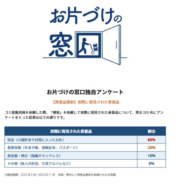 ※調査期間:2023年5月〜2023年11月 対象:弊社にて貴重品捜索を依頼されたお客様