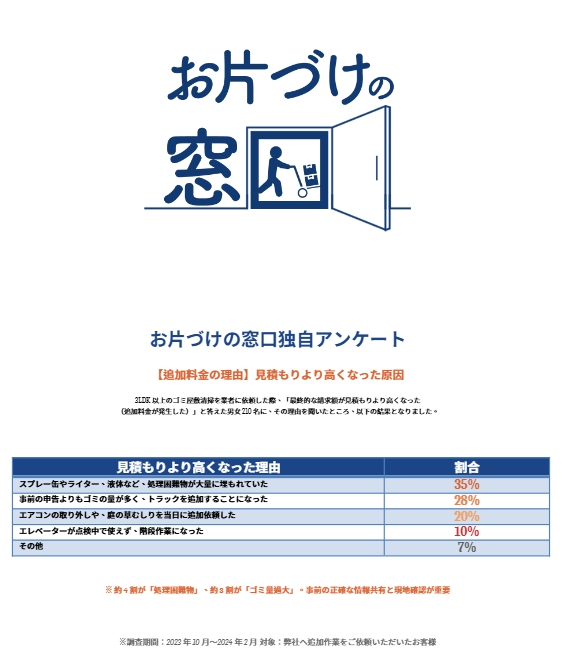 3LDK以上のゴミ屋敷清掃を業者に依頼した際、「最終的な請求額が見積もりより高くなった(追加料金が発生した)」と答えた男女210名に、その理由を聞いたところ、以下の結果となりました。