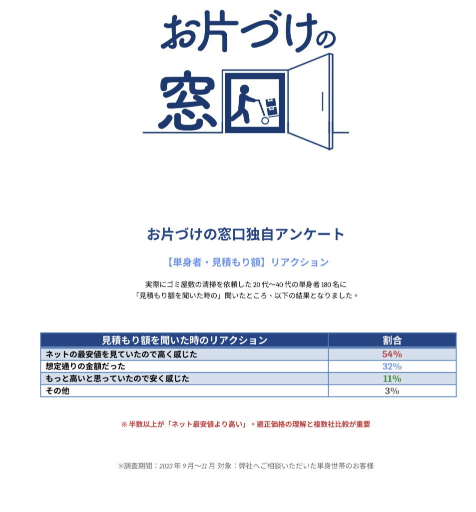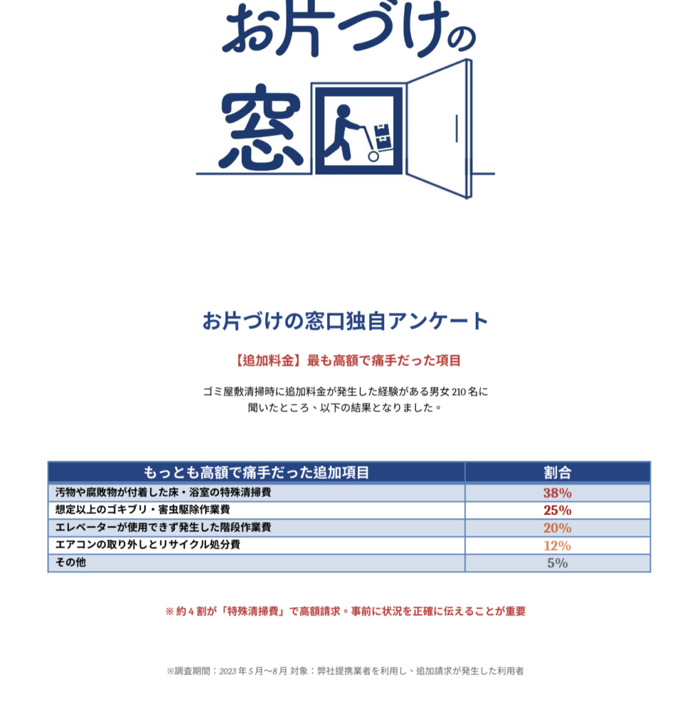 実際に片付けを依頼した人が、どこで「見積もりより高くなった」と感じているのか、実態を調査しました。