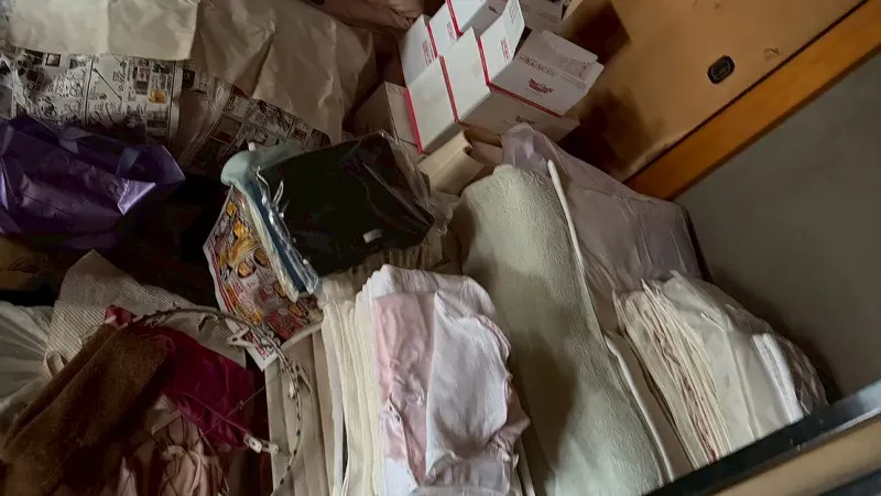 - 状態: 玄関を開けた瞬間からゴミの壁がある。トイレや風呂場までゴミで埋まっており、生活スペースが天井付近のわずかな隙間しかない。