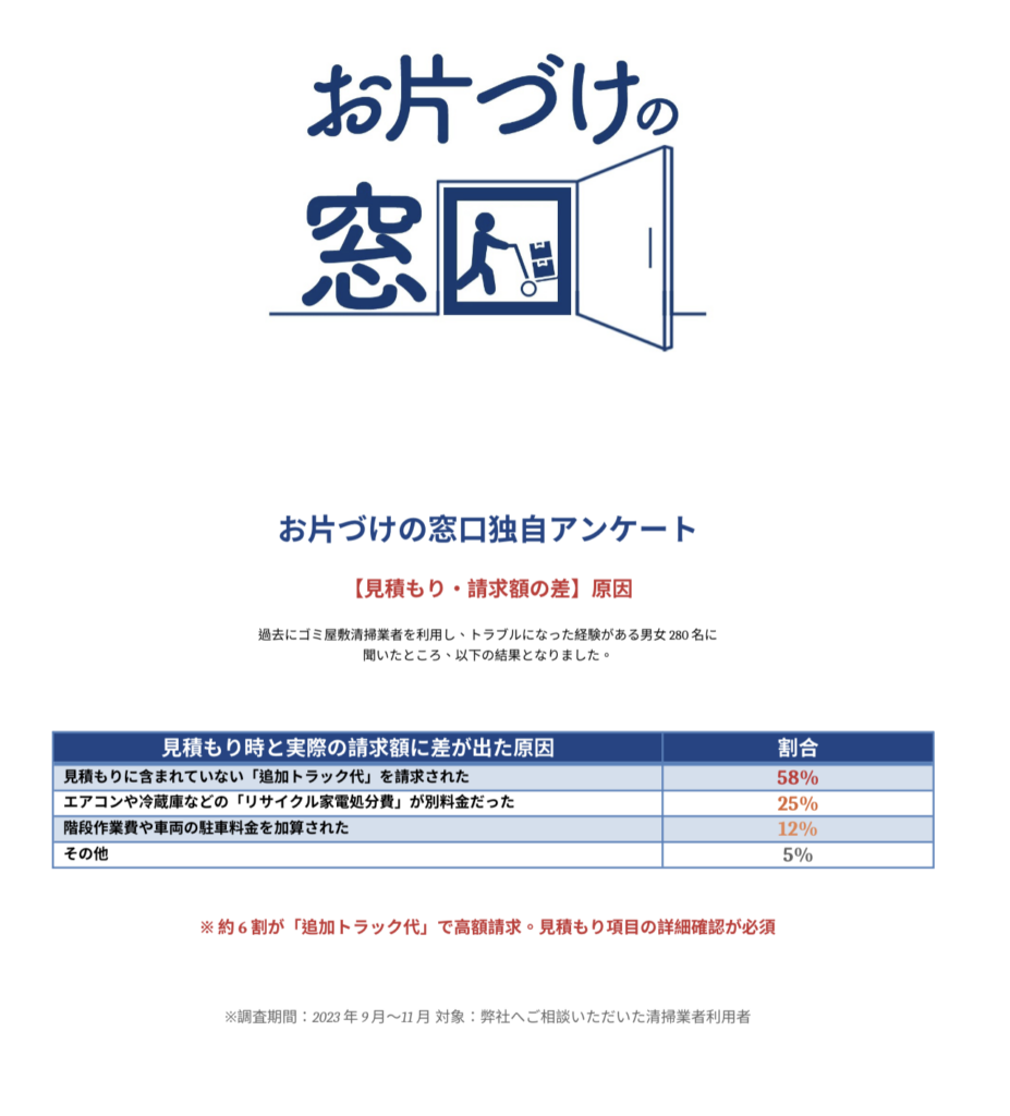 • 見積もりに含まれていない「追加トラック代」を請求された(58%)