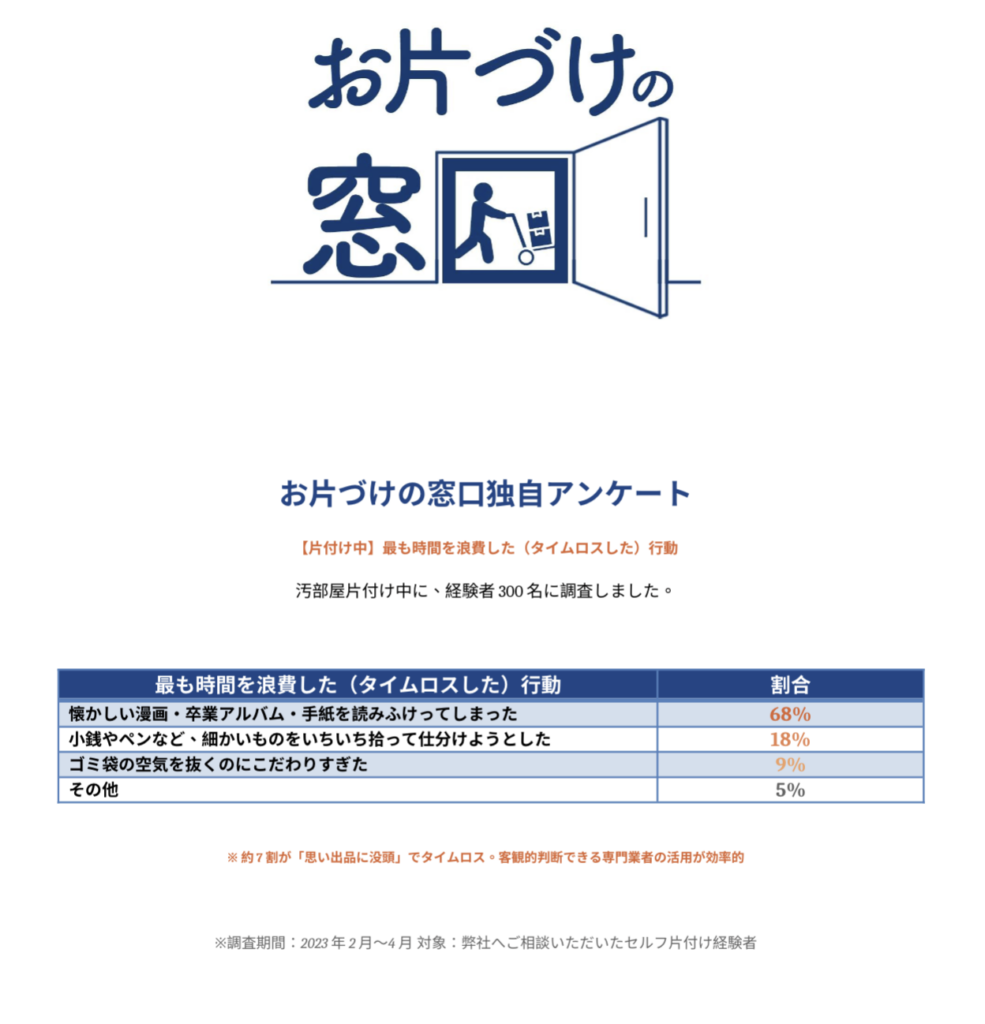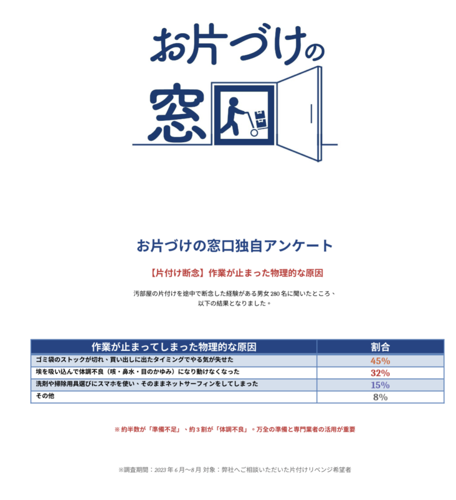 ※調査期間:2023年6月〜8月 対象:弊社へご相談いただいた片付けリベンジ希望者