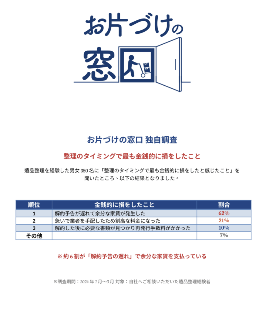 ※調査期間:2024年4月〜6月 対象:自社へご相談いただいた遺品整理経験者