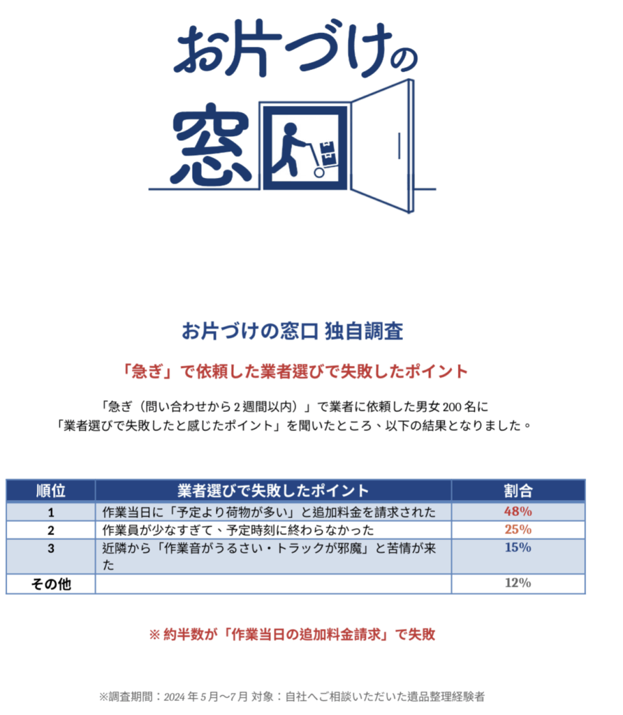 - 作業当日に「予定より荷物が多い」と追加料金を請求された(48%)