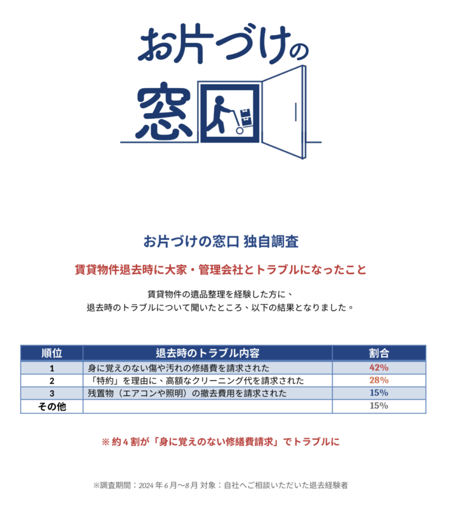 ※調査期間:2024年6月〜8月 対象:自社へご相談いただいた退去経験者