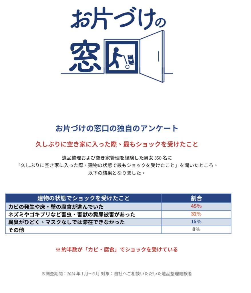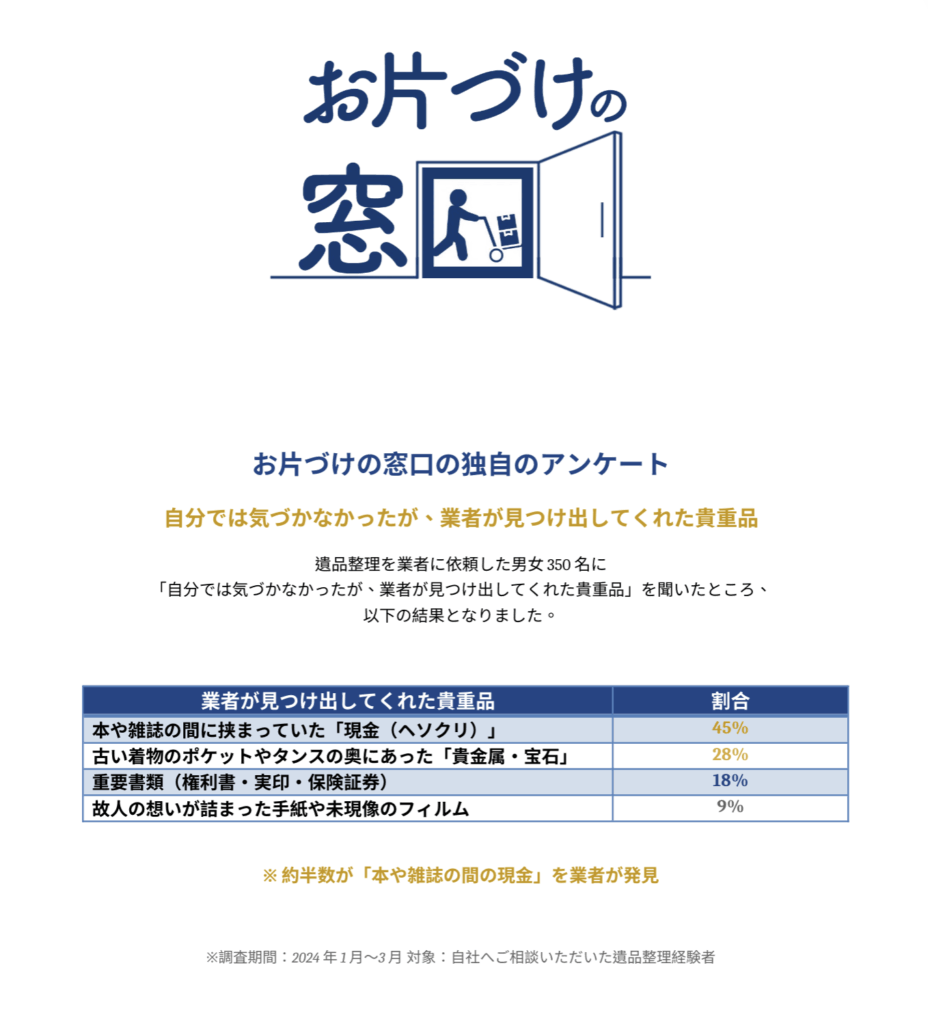お片づけの窓口の独自のアンケート