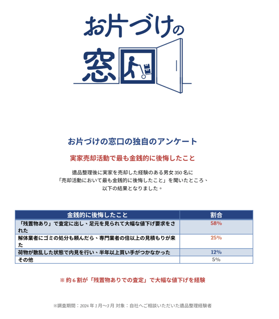 - 「残置物あり」で査定に出し、足元を見られて大幅な値下げ要求をされた(58%)