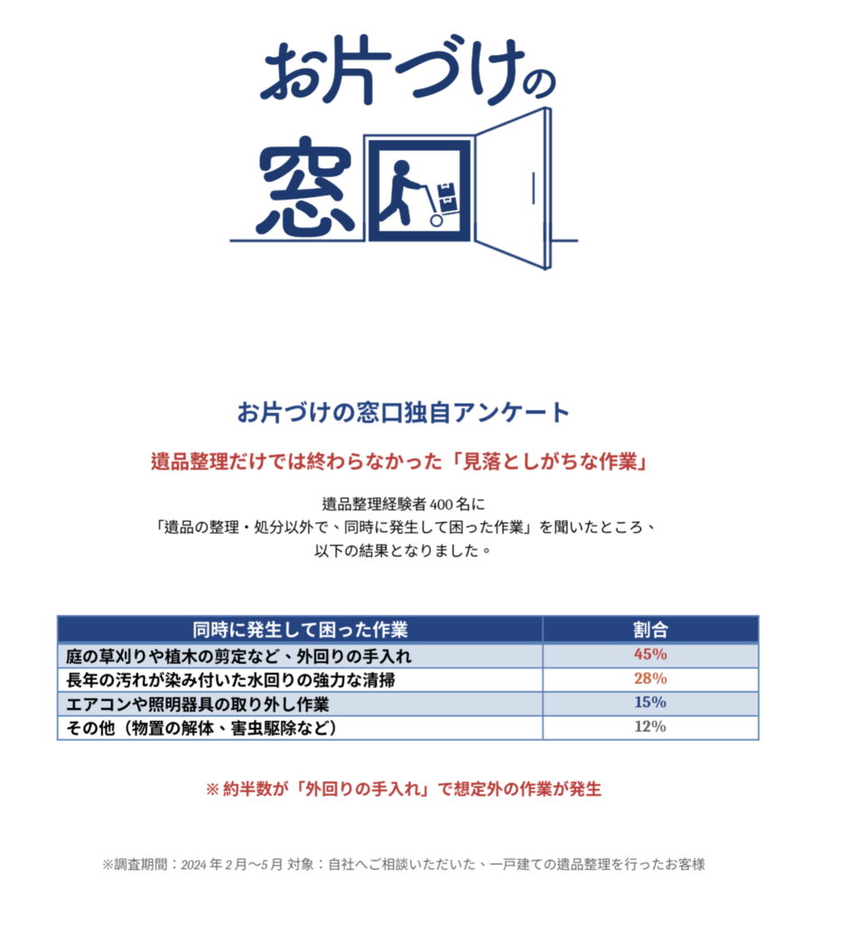 ※調査期間:2024年2月〜5月 対象:自社へご相談いただいた、一戸建ての遺品整理を行ったお客様