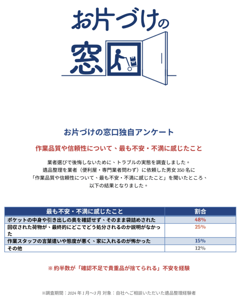 - 便利屋に頼むと「不法投棄」や「雑な扱い」をされないか不安な人