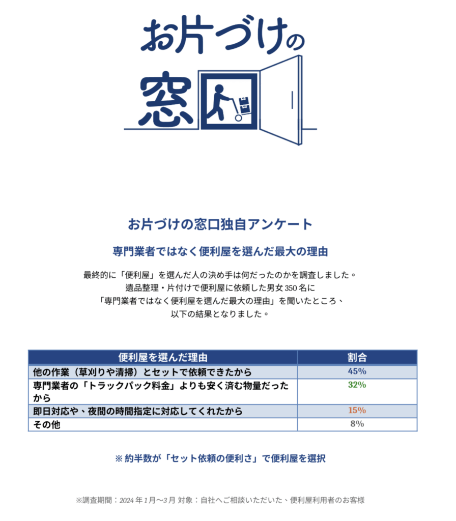 ※調査期間:2024年1月〜3月 対象:自社へご相談いただいた、便利屋利用者のお客様
