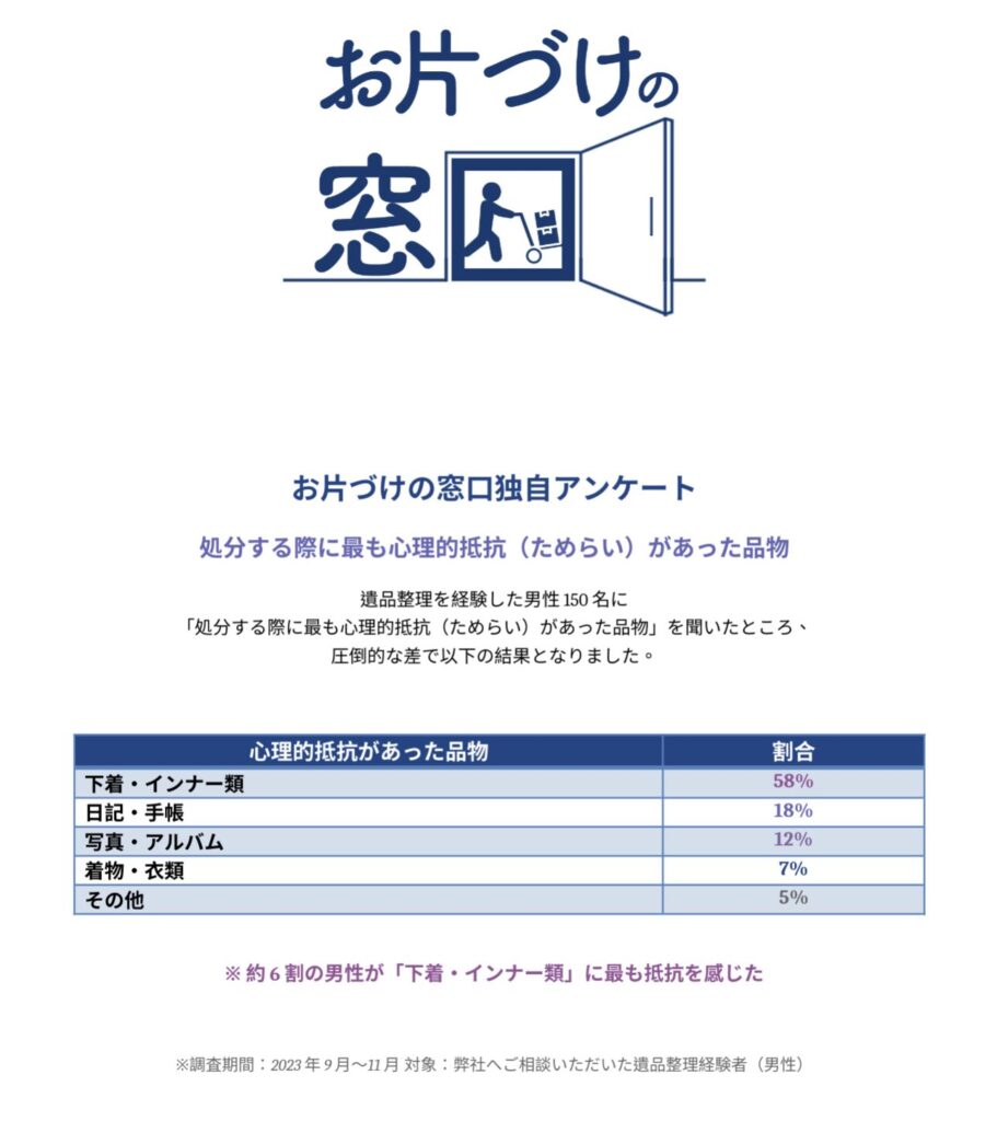 半数以上の男性が、下着類の処分に苦悩しています。あなただけではありません。ゴミとして出すのが辛いなら、少し費用はかかりますが、専門業者に依頼して「供養」という形で手放すのも、決して恥ずかしいことではありません。