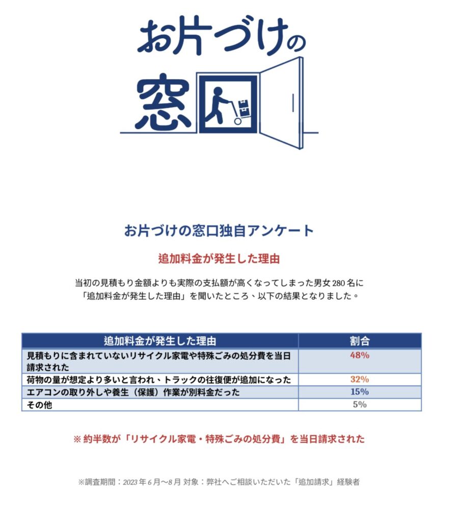 【お片づけの窓口独自アンケート】「追加請求」のリアル