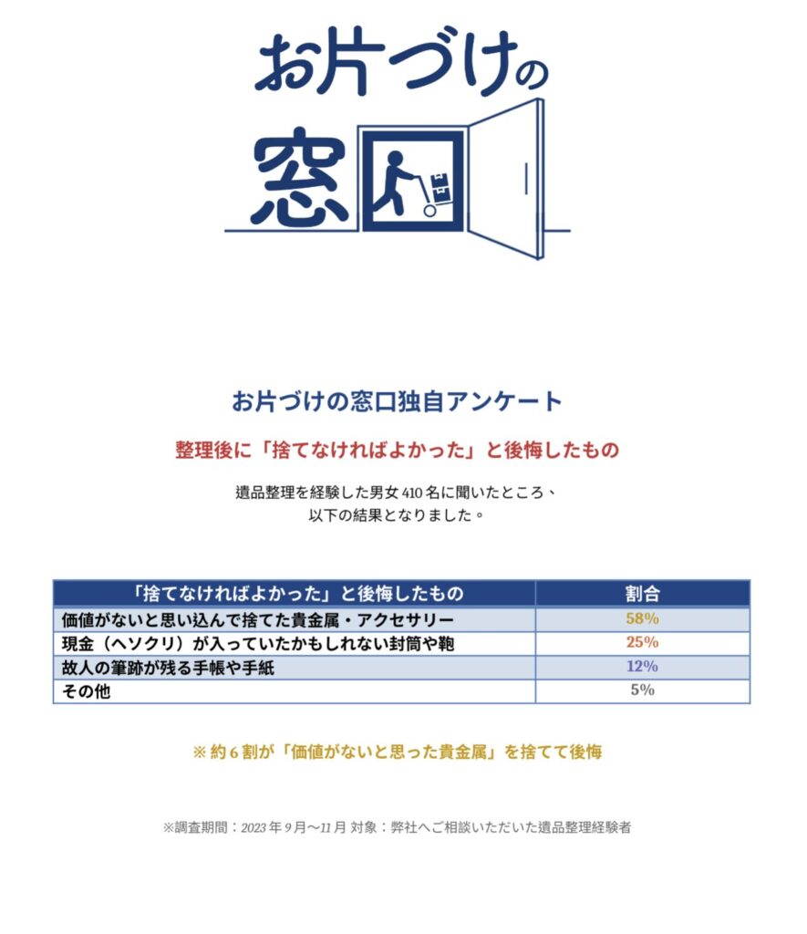 - 価値がないと思い込んで捨てた貴金属・アクセサリー(58%)