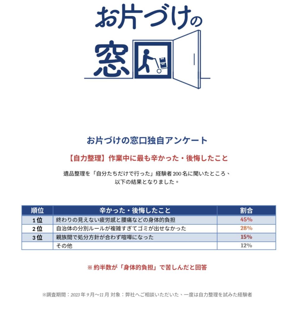 ※調査期間:2023年9月〜11月 対象:弊社へご相談いただいた、一度は自力整理を試みた経験者
