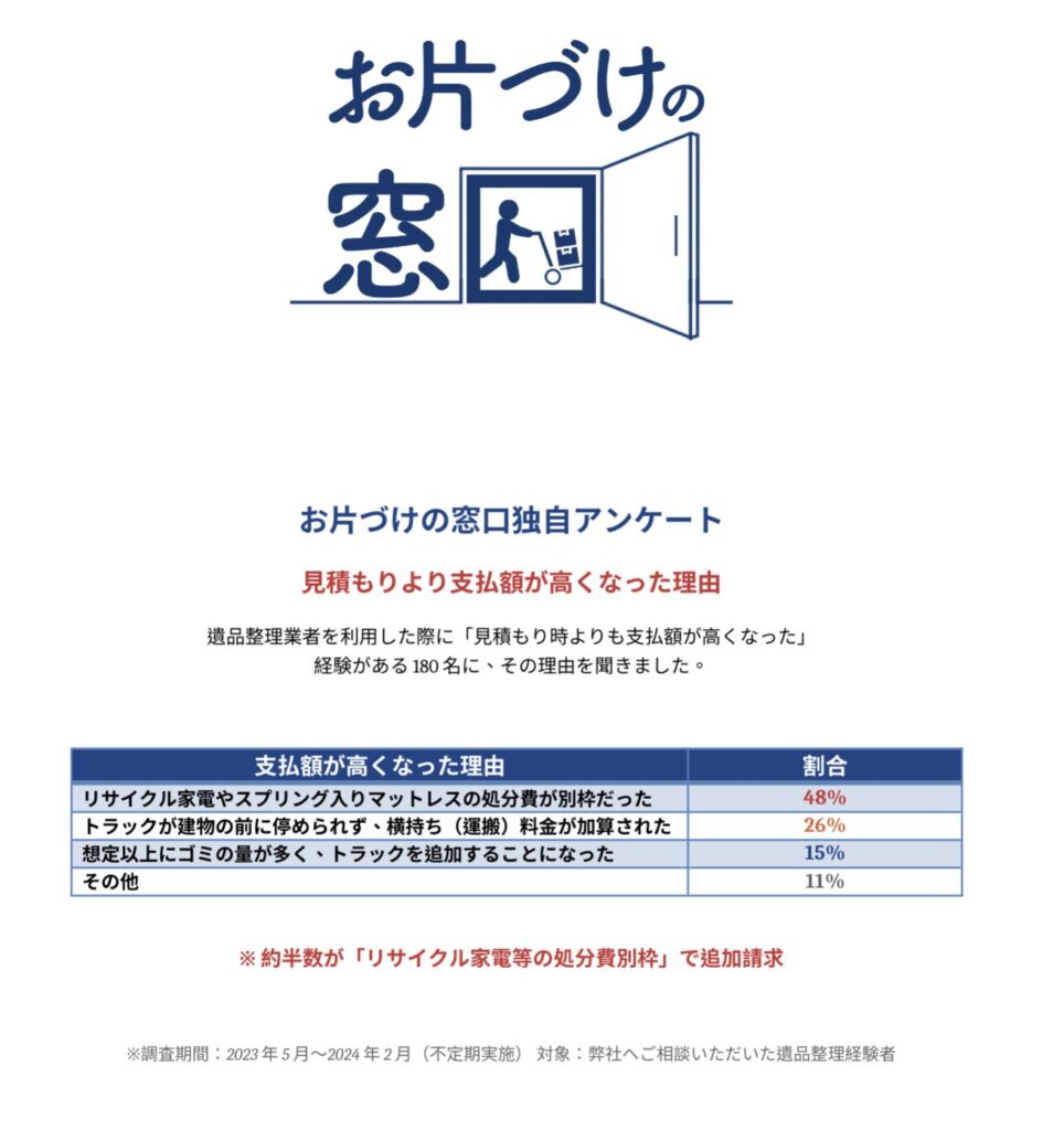 - リサイクル家電やスプリング入りマットレスの処分費が別枠だった(48%)