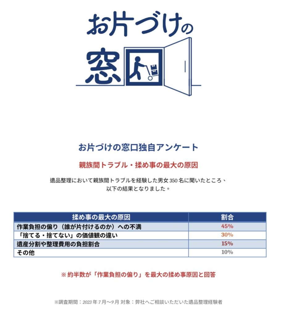 ここで、遺品整理における人間関係のリアルな実態を見てみましょう。