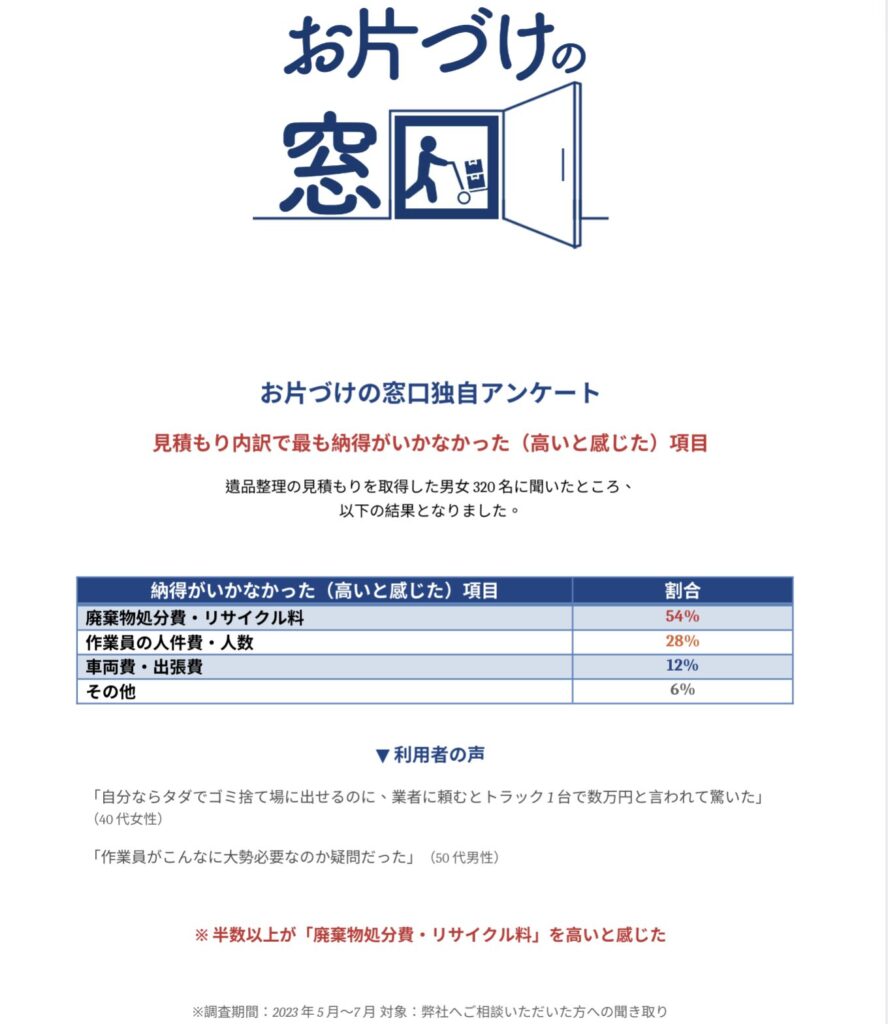 - 「安いプランを選んだら、分別されていないゴミは持っていけないと当日言われ、別料金を取られた」(50代男性)