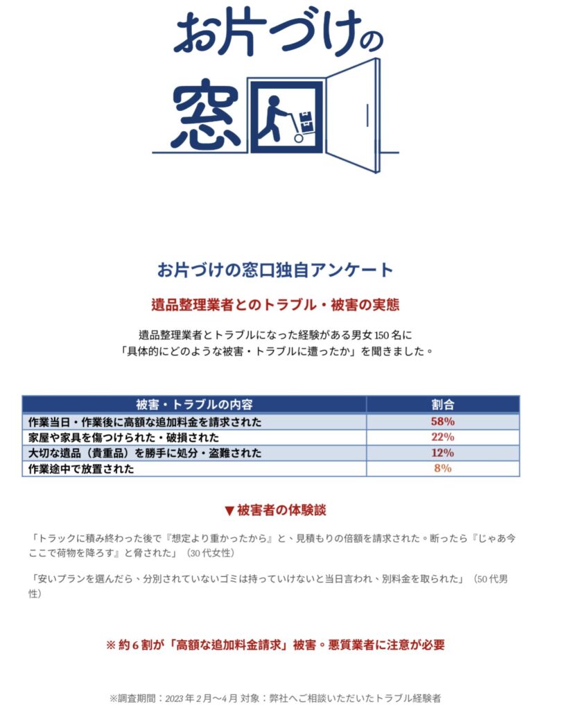 - 作業当日・作業後に高額な追加料金を請求された(58%)