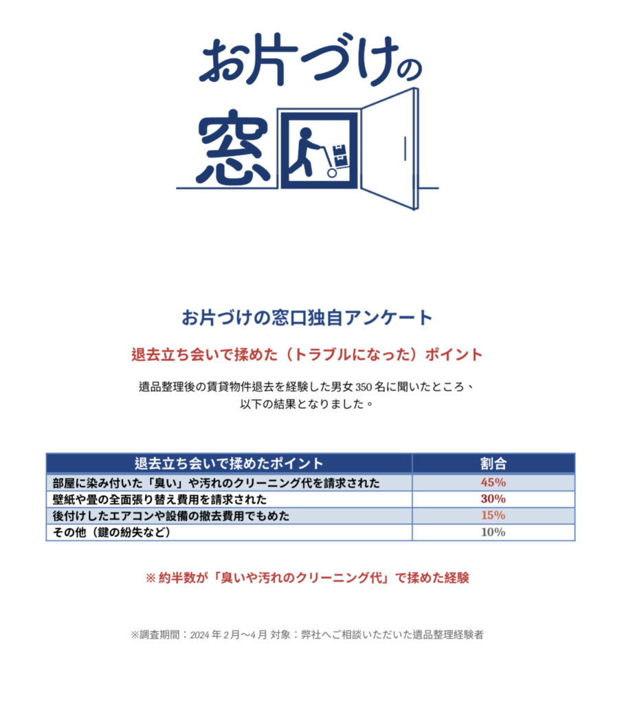 - 部屋に染み付いた「臭い」や汚れのクリーニング代を請求された(45%)