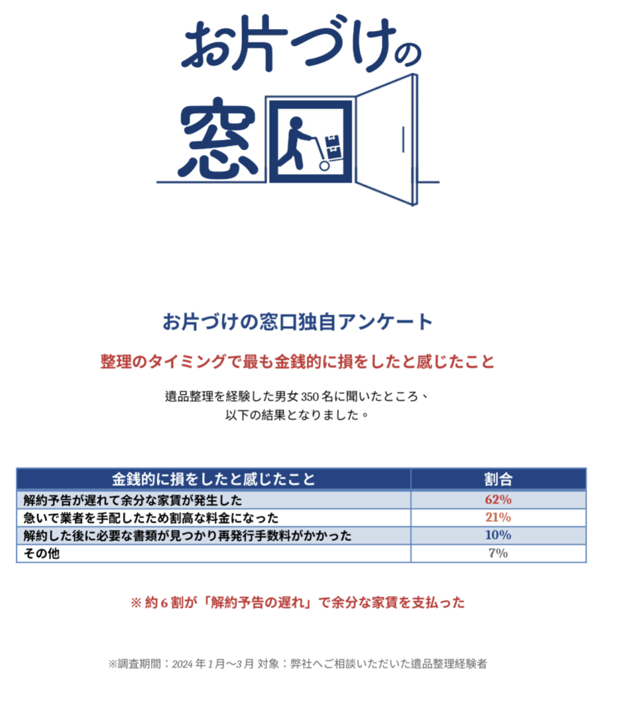 ※調査期間:2024年2月〜4月 対象:弊社へご相談いただいた遺品整理経験者