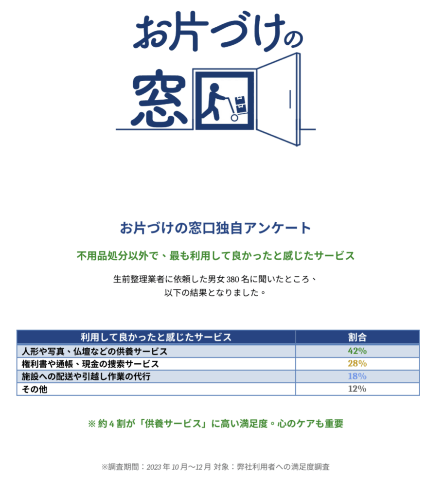 生前整理業者に依頼した男女380名に「不用品処分以外で、最も利用して良かったと感じたサービス」を聞いたところ、以下の結果となりました。