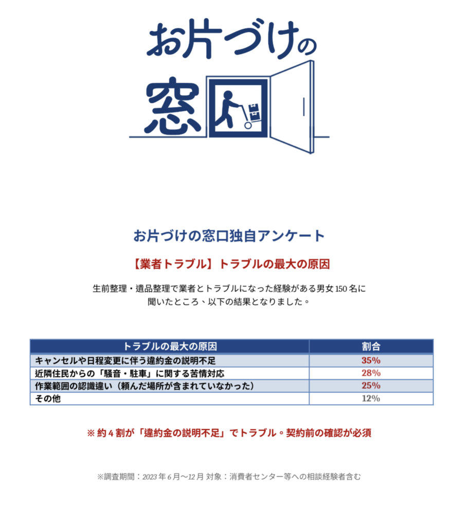 生前整理・遺品整理で業者とトラブルになった経験がある男女150名に「トラブルの最大の原因」を聞いたところ、以下の結果となりました。