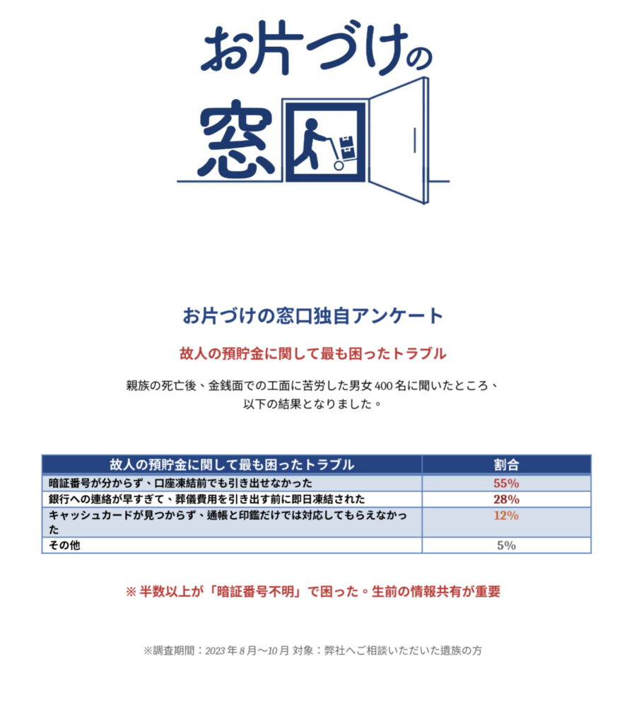 ※調査期間:2023年9月〜11月 対象:弊社へご相談いただいた遺品整理経験者