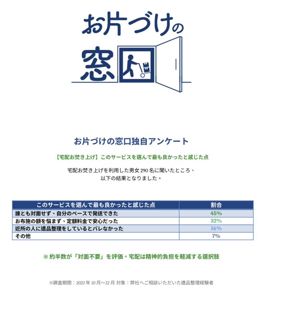 アンケート結果からは、コストパフォーマンス以上に「対面の煩わしさがない」「近所へのプライバシー」を重視する心理が見えてきます。