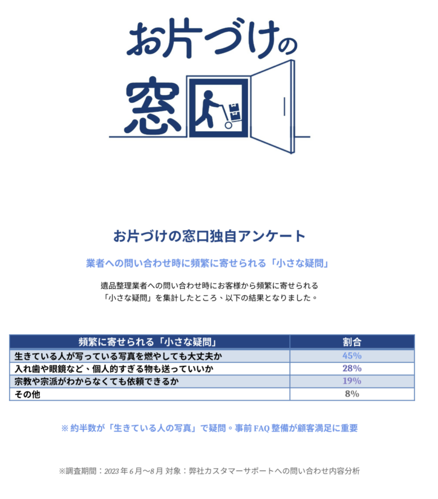 遺品整理業者への問い合わせ時にお客様から頻繁に寄せられる「小さな疑問」を集計したところ、以下の結果となりました。