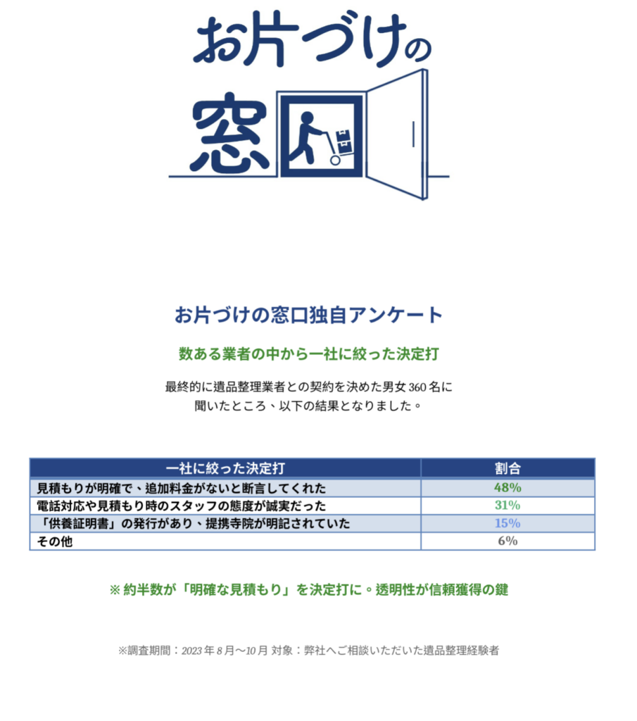 - 見積もりが明確で、追加料金がないと断言してくれた(48%)
