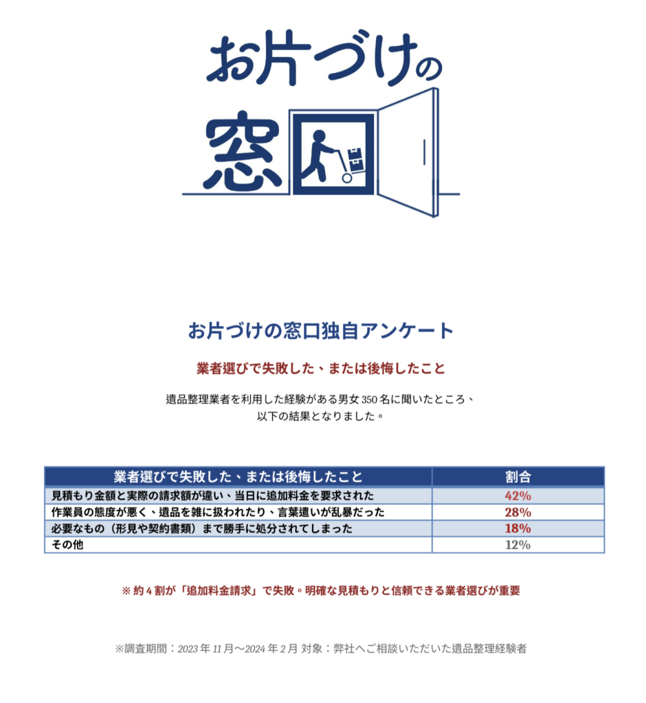 • 作業員の態度が悪く、遺品を雑に扱われたり、言葉遣いが乱暴だった(28%)