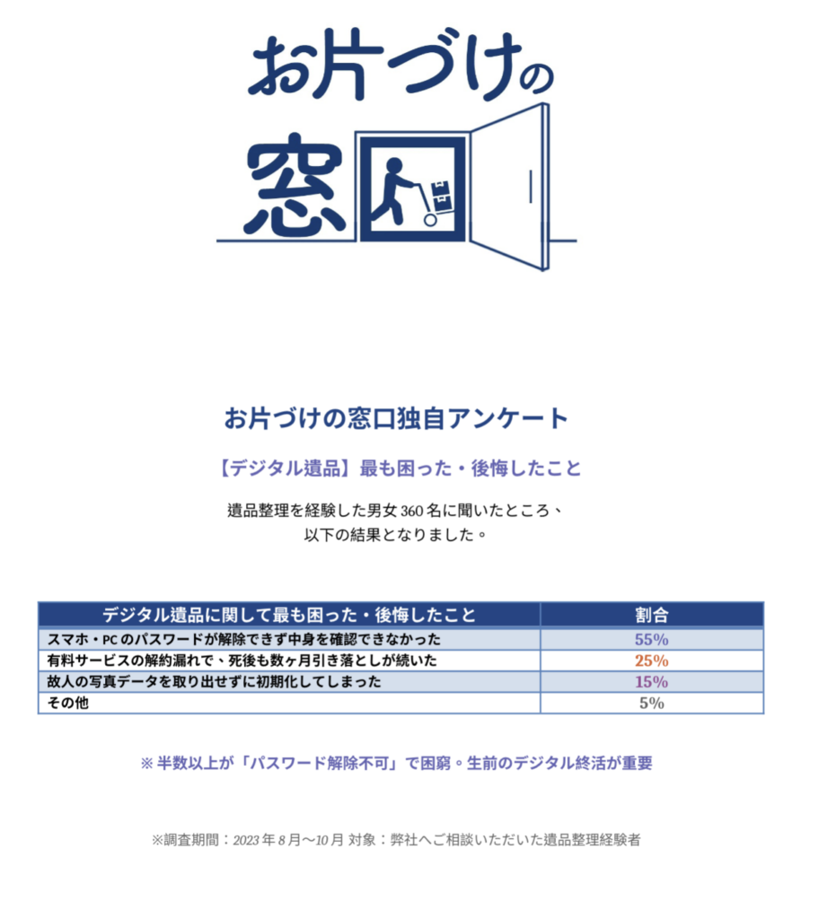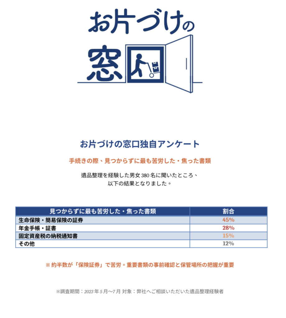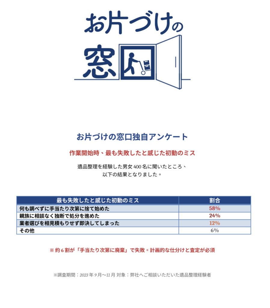 まずは、以下の「お片づけの窓口独自アンケート」の結果をご覧ください。準備不足がいかに大きなリスクを生むかが分かります。