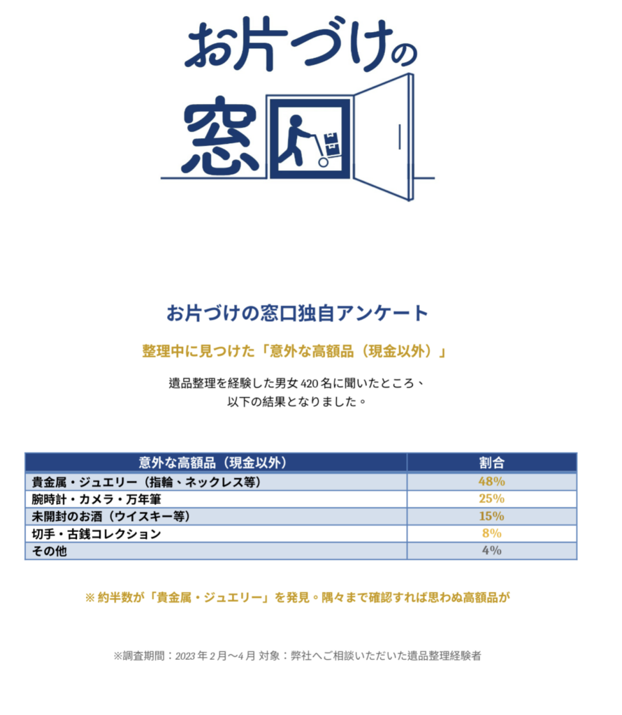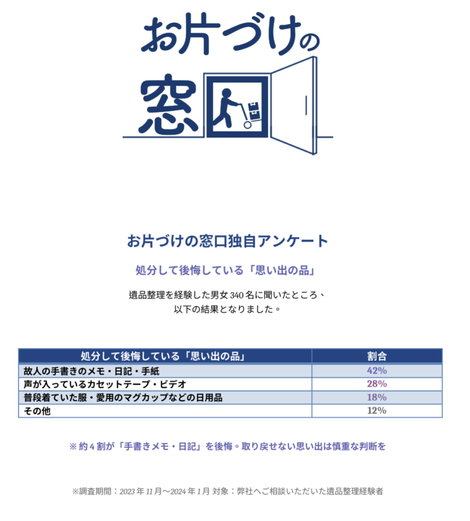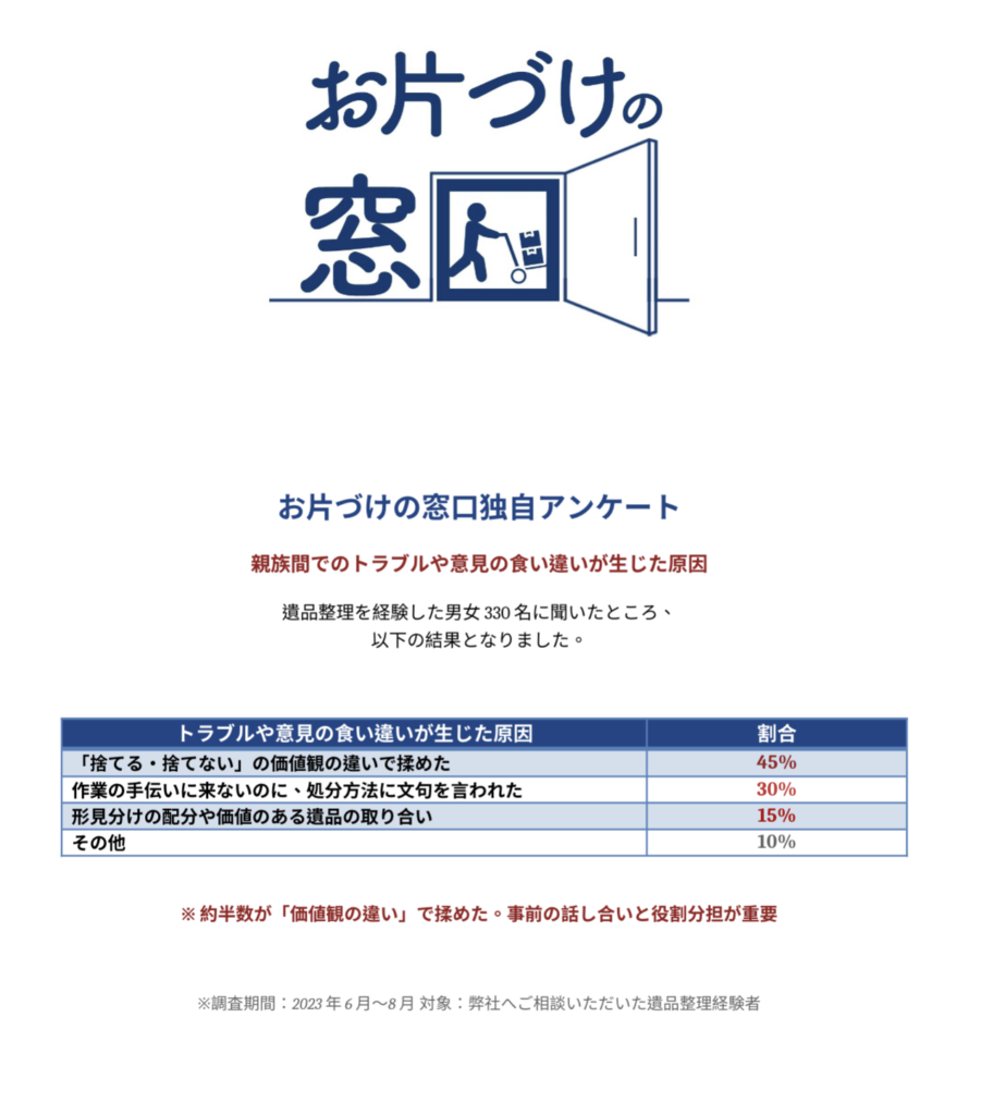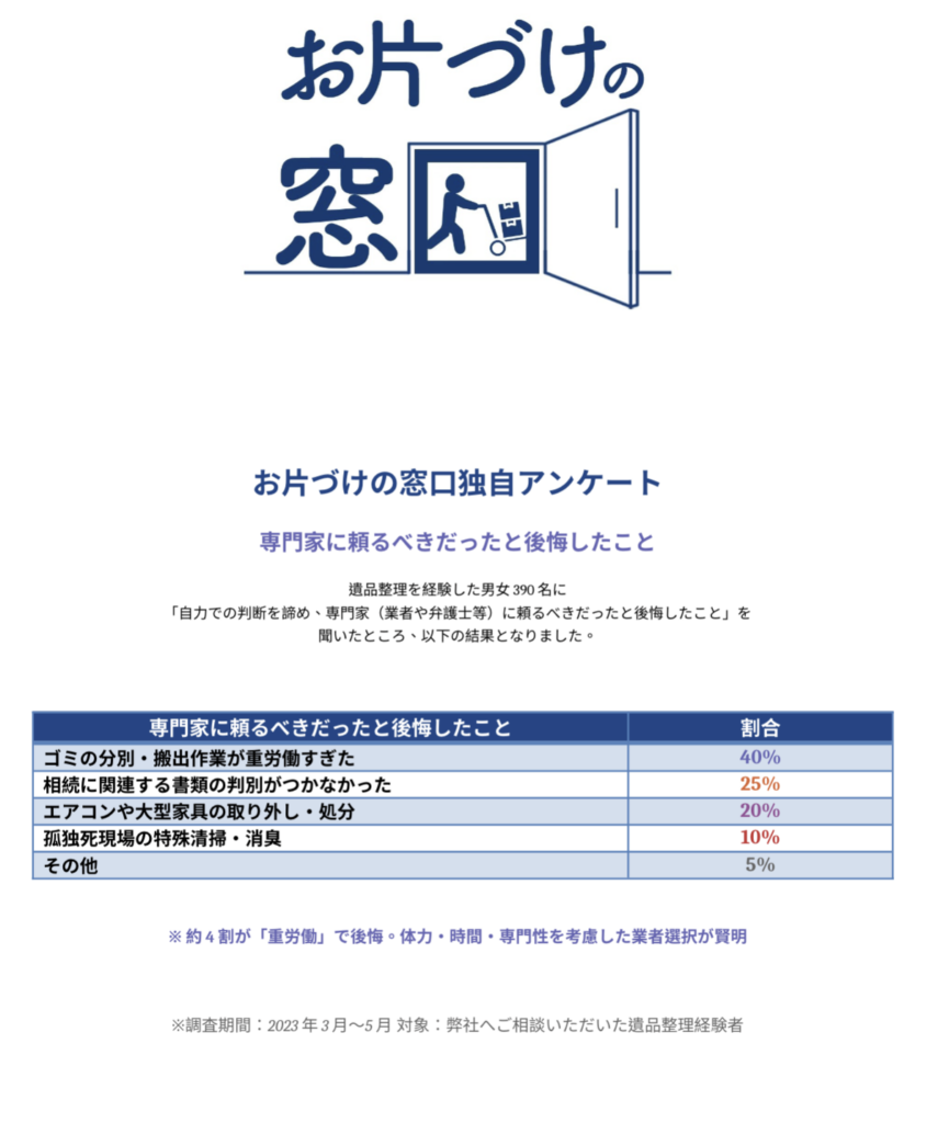 まずは、以下の「お片づけの窓口独自アンケート」の結果をご覧ください。準備不足がいかに大きなリスクを生むかが分かります。