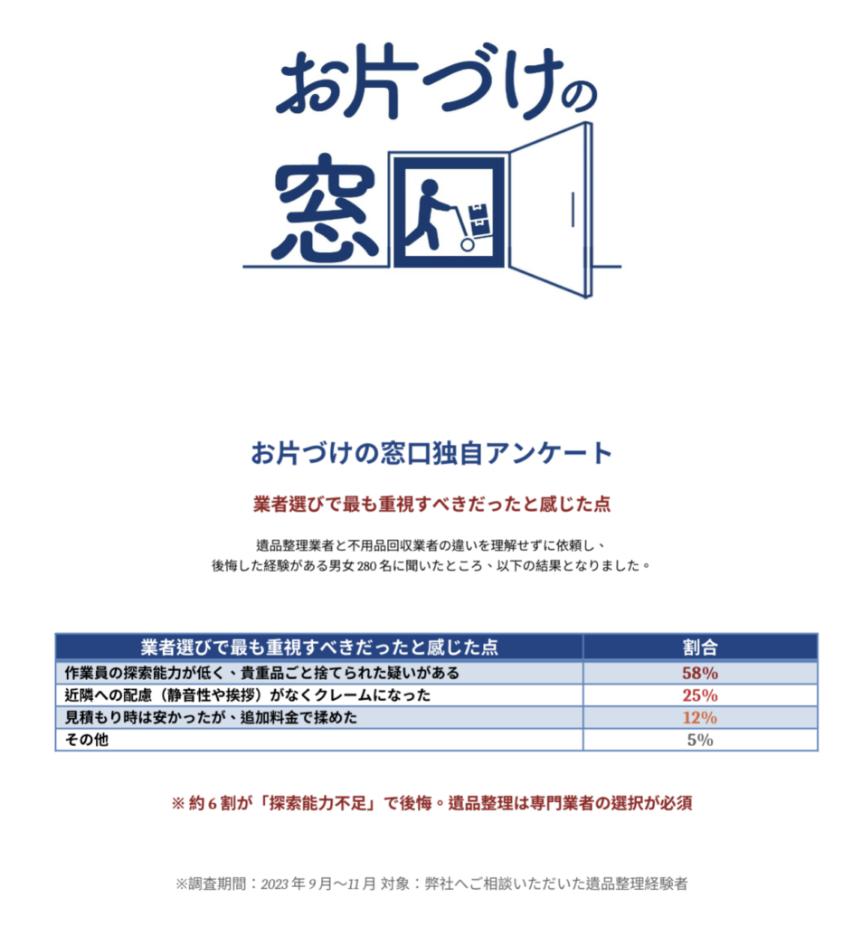 ※調査期間:2023年11月〜2024年1月 対象:弊社へご相談いただいた遺品整理検討者