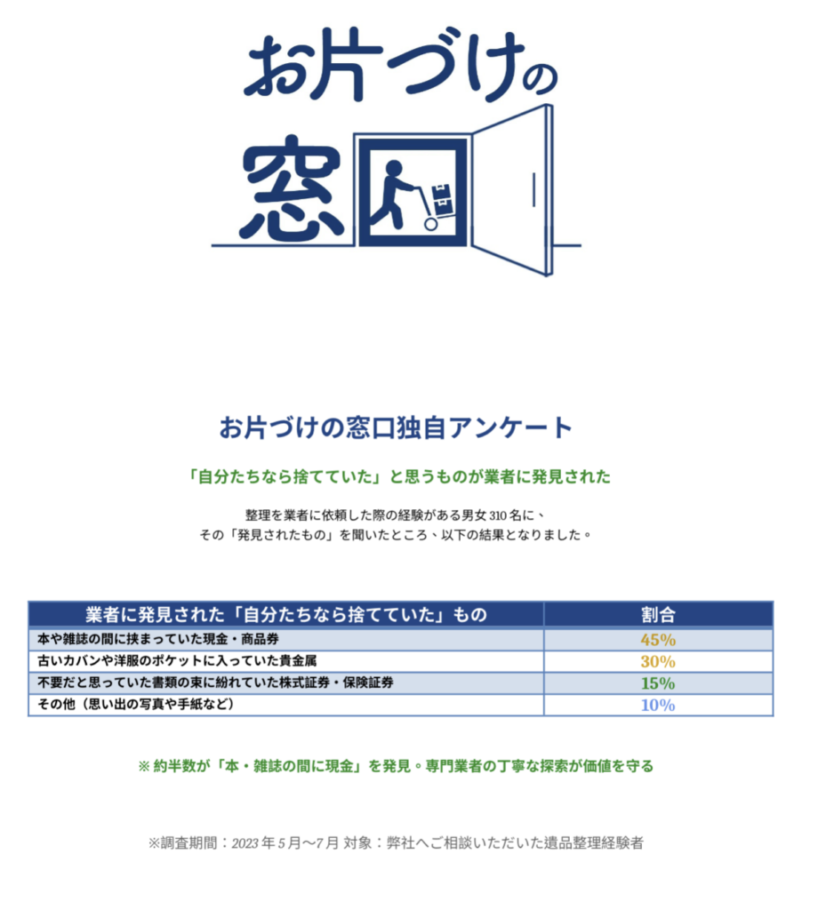 このように、約半数の人が「紙ゴミだと思って捨てようとした中に現金があった」と回答しています。これこそが、費用を払ってでもプロの「目」を入れるべき最大の理由です。