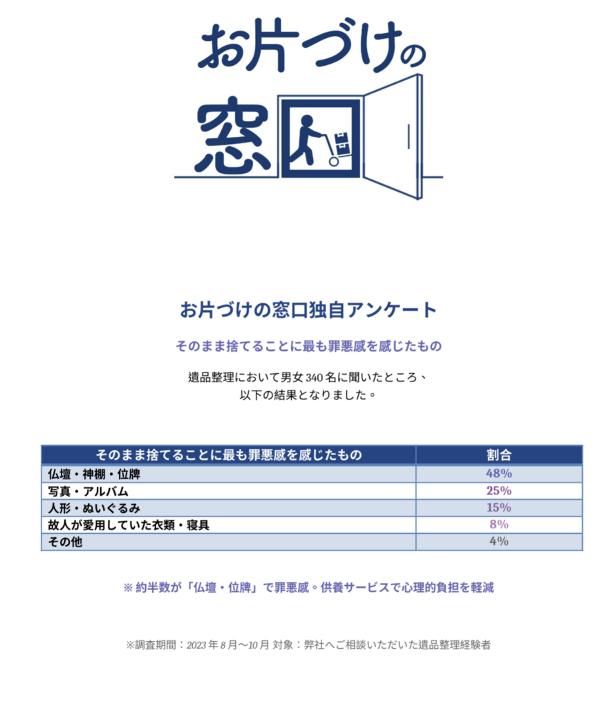 • 仏壇、人形、写真など、思い入れのある品の処分方法(供養)に悩んでいる人