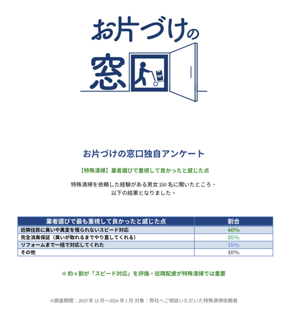 • 近隣住民に臭いや異変を悟られないスピード対応(40%)