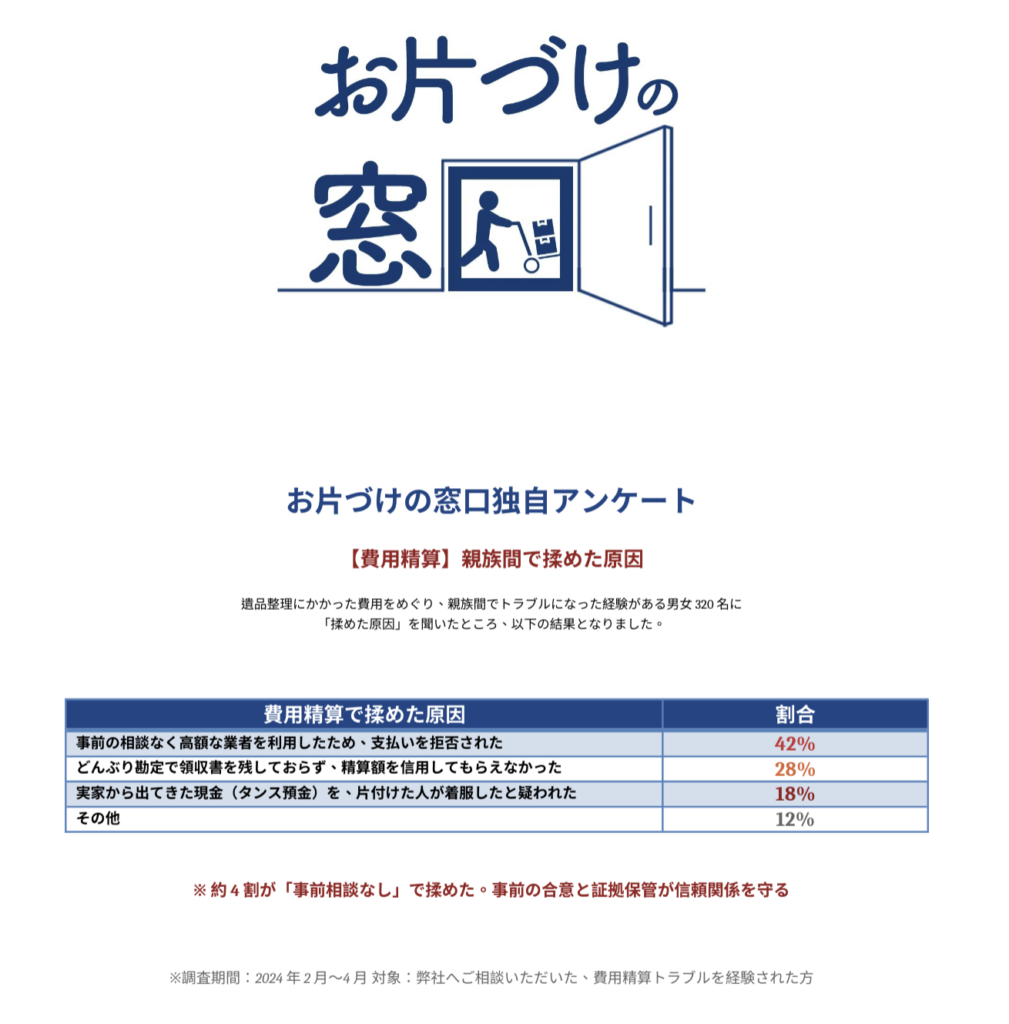 - 支援部隊(遠方・高齢の親族): 資金援助(ゴミ処理代、実働部隊の交通費・食事代、場合によっては「手間賃」)を担当。