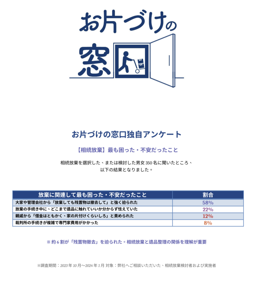 - 大家や管理会社から「放棄しても残置物は撤去して」と強く迫られた(58%)