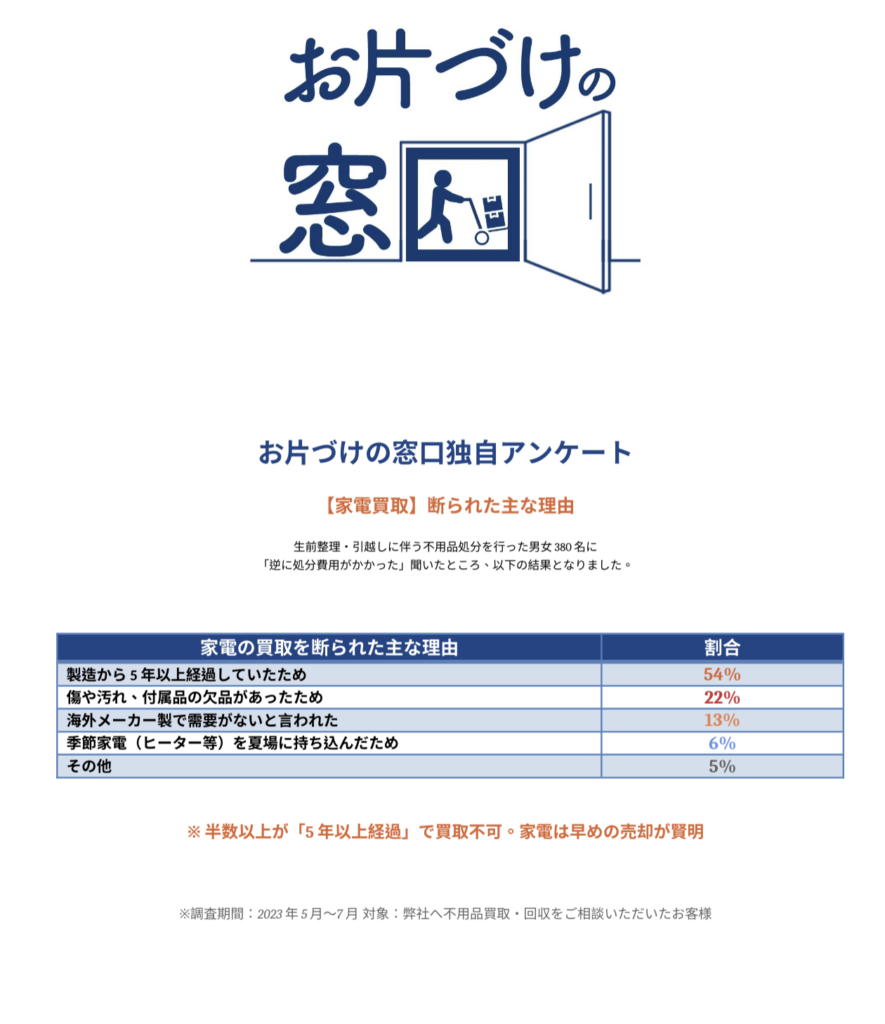 ※調査期間:2023年5月〜7月 対象:弊社へ不用品買取・回収をご相談いただいたお客様