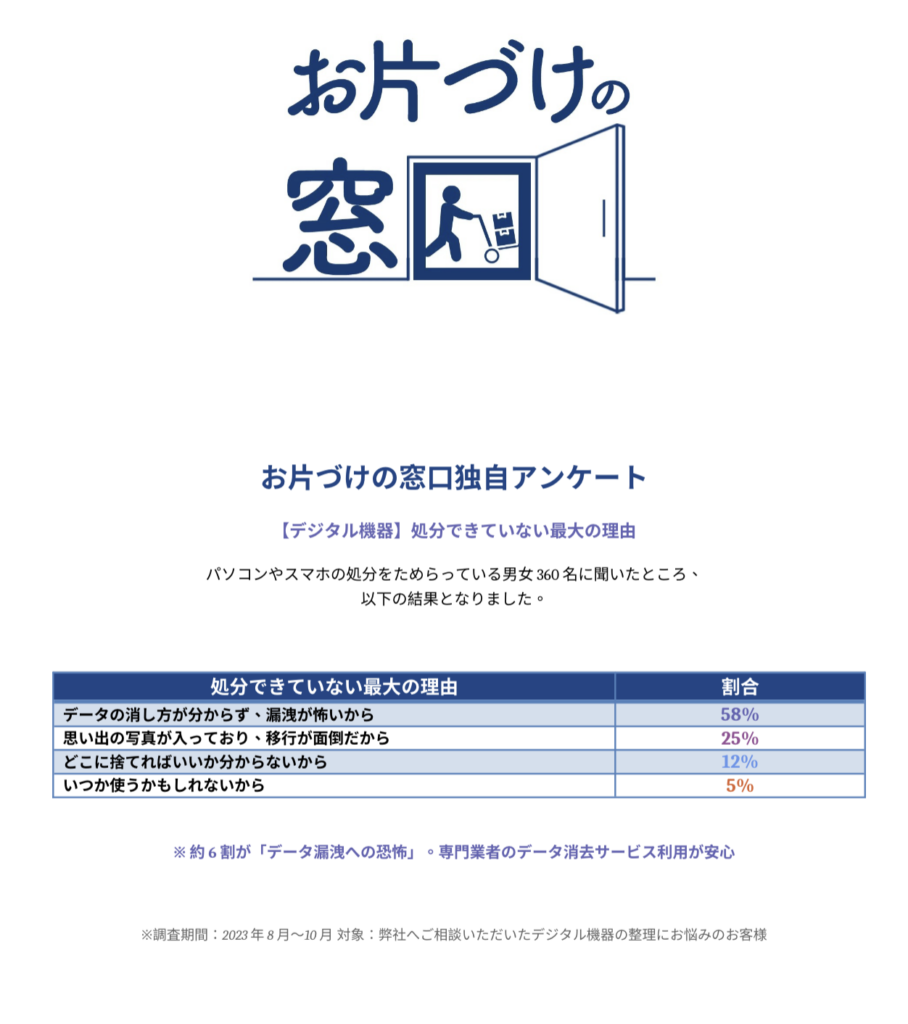 - データの消し方が分からず、漏洩が怖いから(58%)