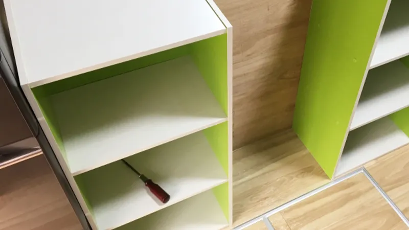 カラーボックスの「板」は可燃ごみで出せても、「部品」は別です。